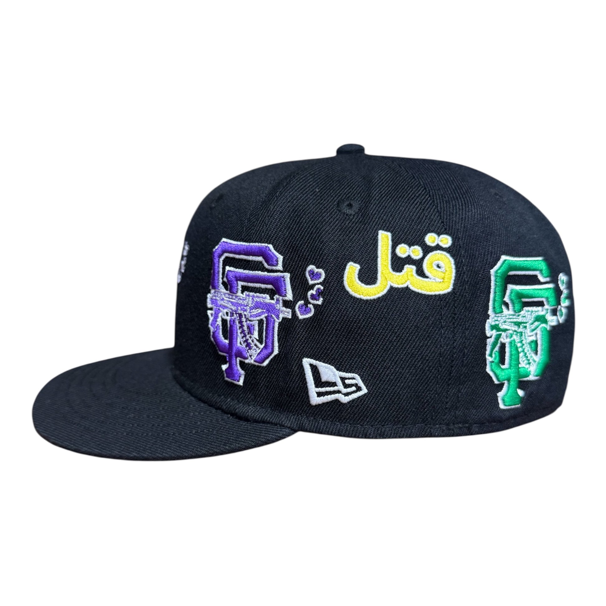 LOVE SUCKS Multi Logo Mardi Gras FITTED CAP in Black